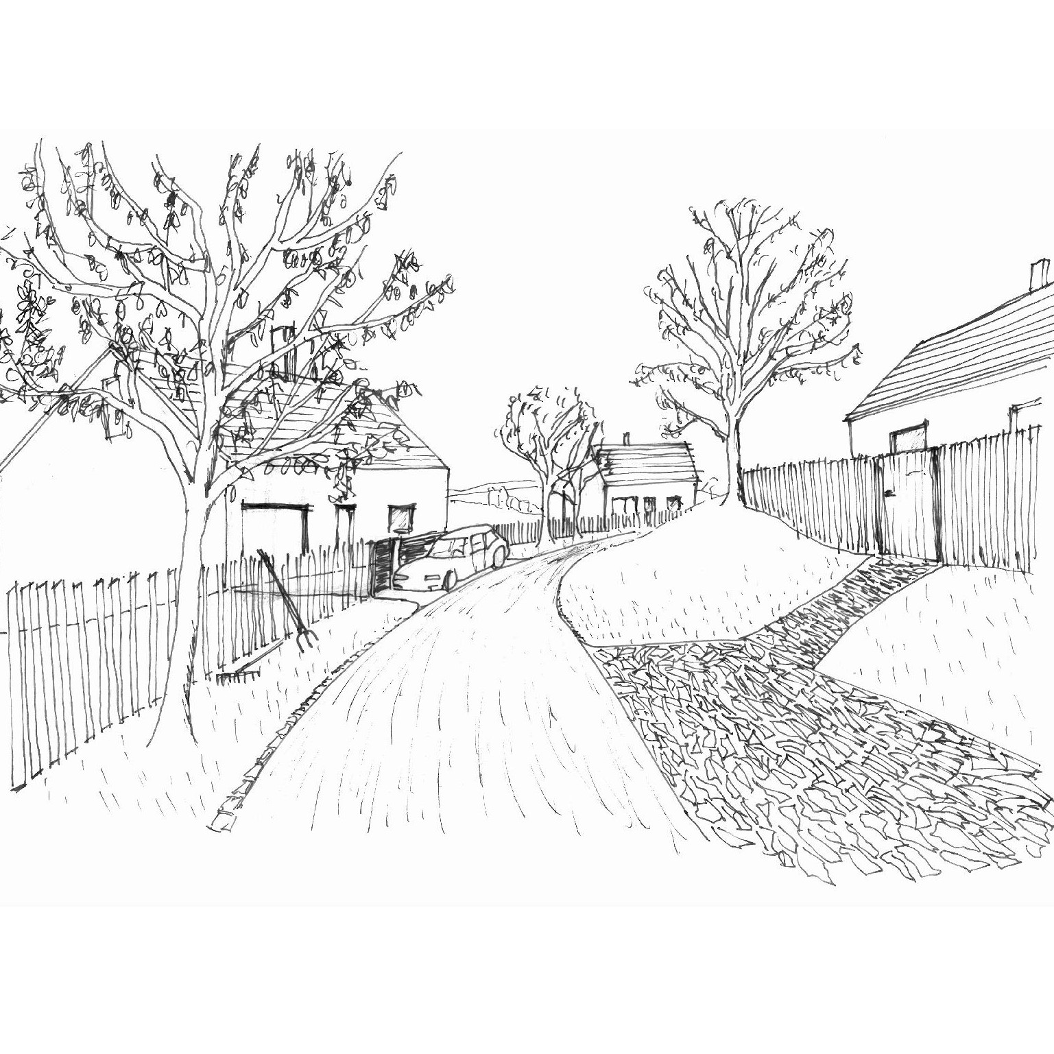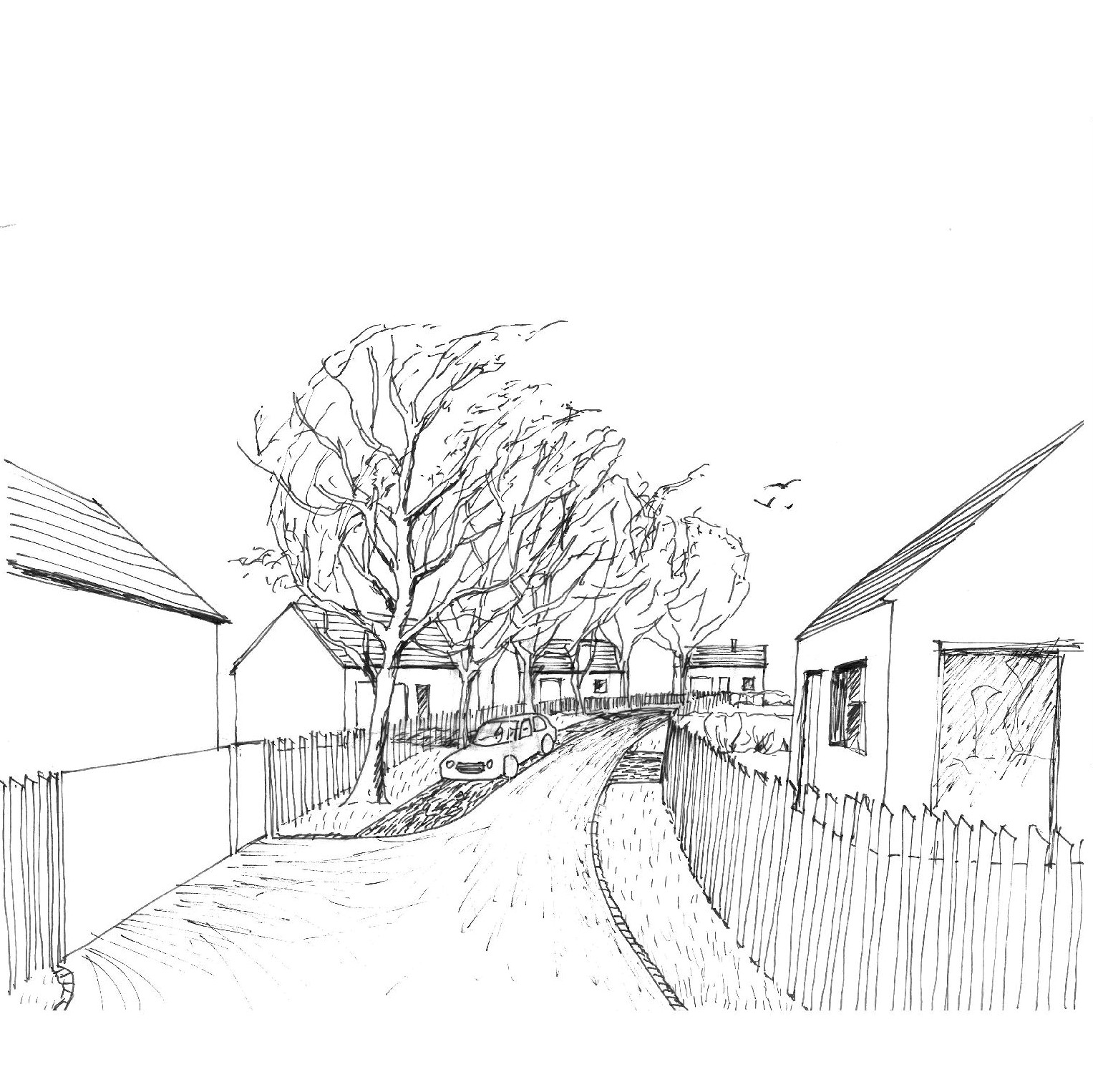 Zástavba je navržena ze solitérních rodinných domů. Orientace domů (hřebeny střech) je převážně podél ulice – respektive po vrstevnici. Uliční čára, tedy umístění plotu, je v odstupu od okraje vozovky, aby výjezdy z pozemků byly přehledné. Stavební čára, tedy odstup domů od ulice je navržena tak, aby bylo možné auta zaparkovat před dům. Výška domů je do 5 m
