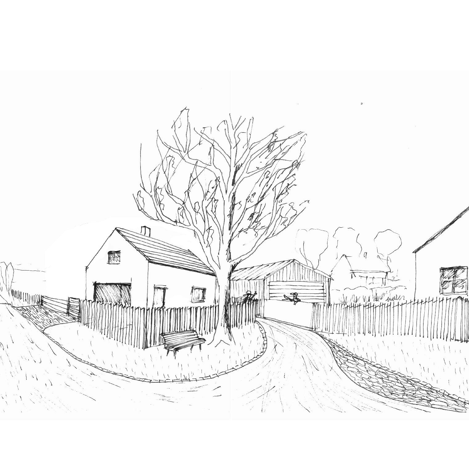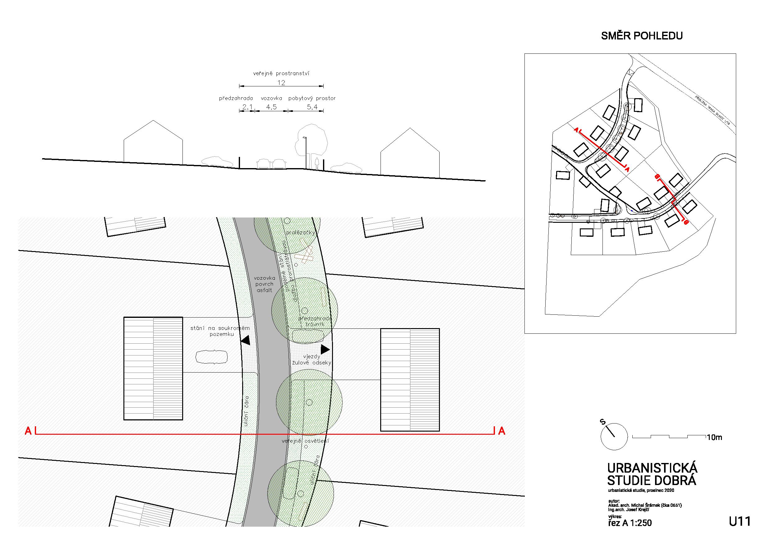 o místo kolem úvratě, v 2. etapě je to prostor pod stromy v nejrozšířenější části zaoblené ulice. V prvním případě bude prostor vybaven lavičkou, umístěnou pod nově vysazenou lípou, případně doplněnou o výtvarný objekt – sochu, boží muka atd… V druhém případě bude pobytový prostor doplněn o lavičky a prolézačky z kmenů stromů.