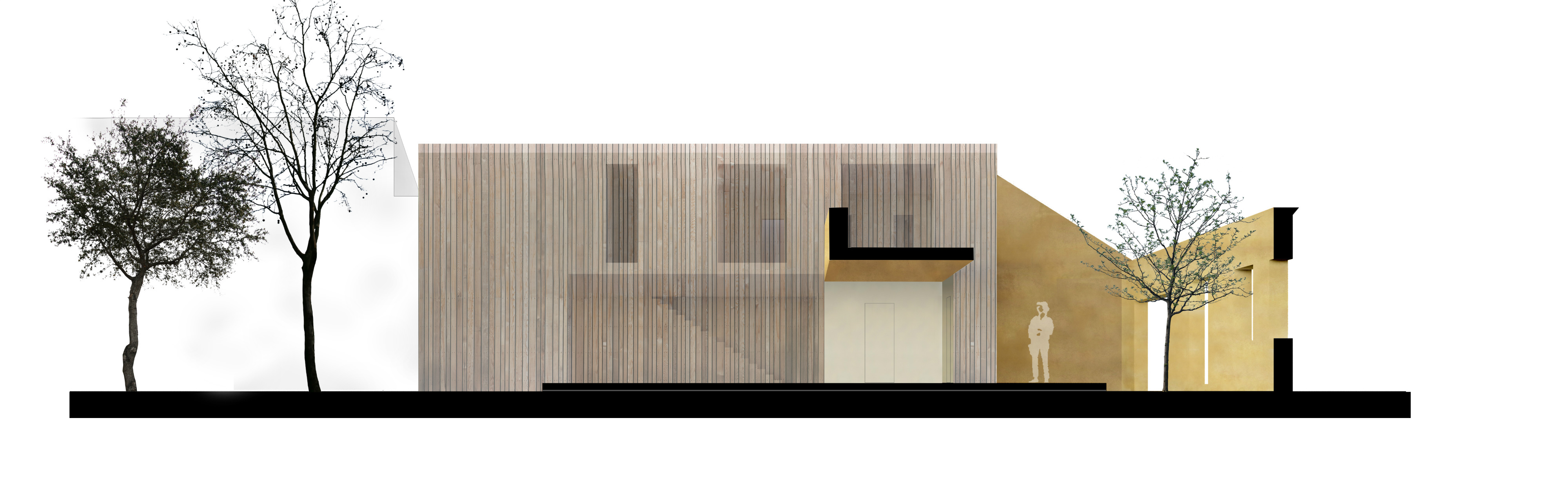Po konzultaci s investorem se projevilo, že lehká rekonstrukce stávajícího stavu nevyhoví jeho potřebám. Nutnost razantnějšího zásahu podporoval fakt, že konstrukce domu byly ve špatném technickém stavu. Rozhodli jsme se zachovat to cenné z původního domu, tedy obvodové stěny. Původní dům tak získal novou funkci - byl přeměněn na dvorek. Dům se stal vzpomínkou, možná památkou, vzhledem připomínajícím antické chrámy. Do zahrady jsme poté vložili jednoduchý hranol nového rodinného domu, částečně zasahujícího i do dvorku.