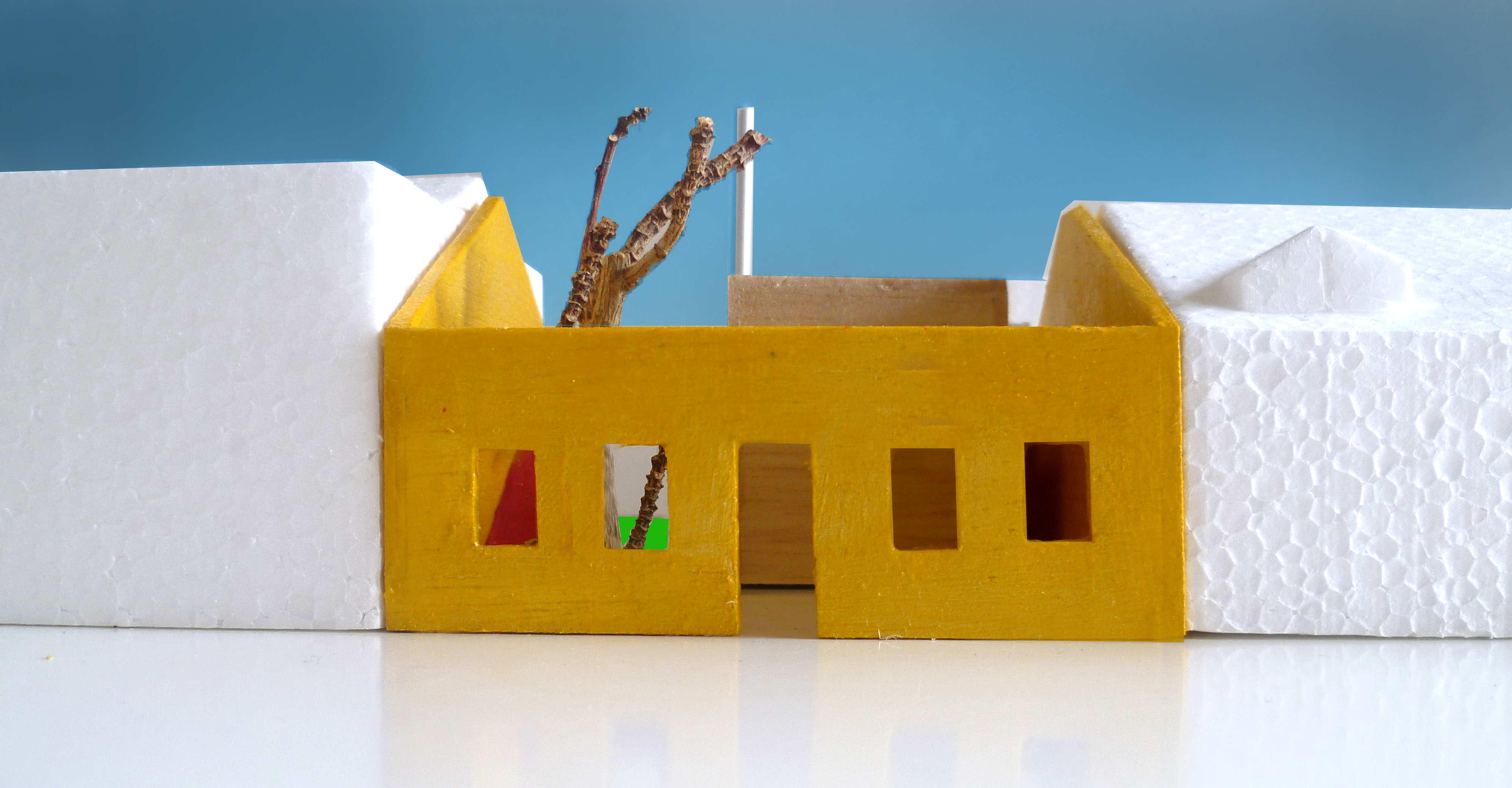 Ulice Na Bukovině se nachází v pokojné části Pardubic. Na jedné straně je uliční fronta řadových domů, trochu rozpadlá několika pomlkami. Jen všímavý člověk si představí, že kdysi mohly být všechny domky stejné. Za nimi jsou krásné zahrady se stromy a záhony. Druhá strana ulice je odjinud. Jsou zde solitérní třípodlažní panelové bytovky, mezi kterými se dá kamsi proplout. Našim úkolem bylo zrekonstruovat jeden z řadových rodinných domů, který si na rozdíl od sousedních domů zachoval svůj původní vzhled s důstojnou symetrickou fasádou, členěnou pilastry a římsami.